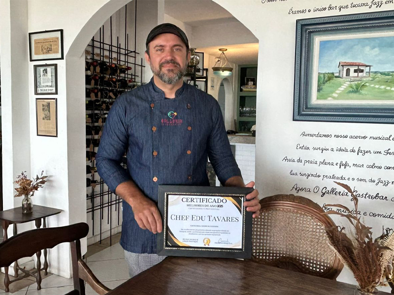 Edu Tavares, do Galleria Restaurante, recebe prêmio de melhor chef de Rio das Ostras