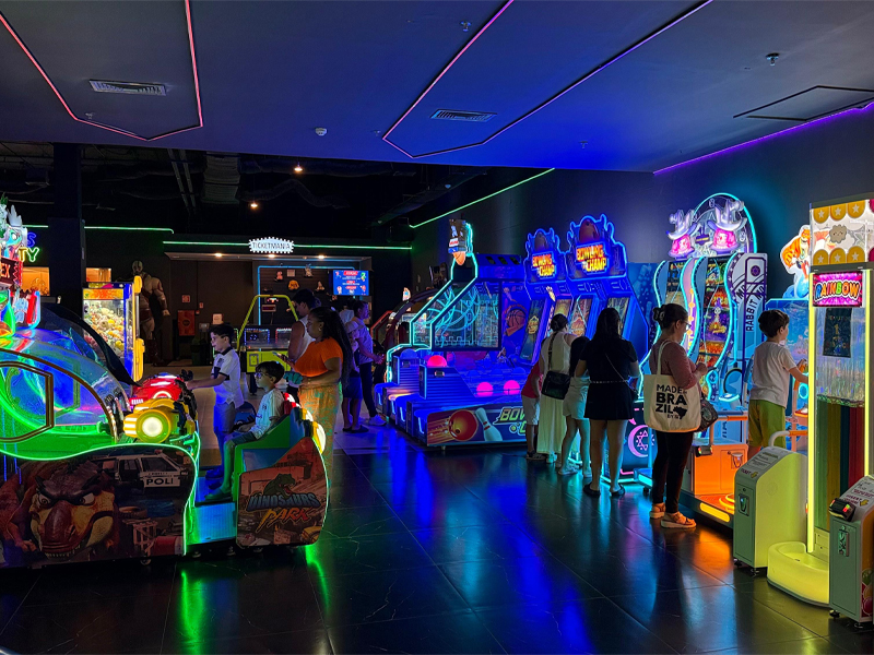 Outras opções incluem espaços dedicados a jogos eletrônicos, como a You Win Games, e áreas de recreação ativa, a exemplo da Jump Arena, que oferecem atividades voltadas principalmente para crianças e adolescentes.