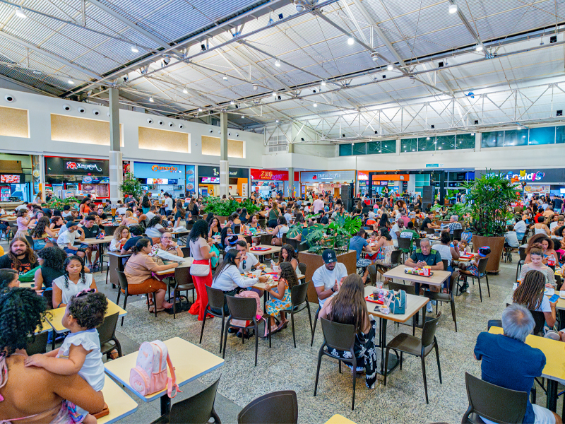 Na área gastronômica, a tradição de consumo de pescados durante a Páscoa também se reflete nas escolhas dos frequentadores. A praça de alimentação reúne diferentes opções de refeições, com restaurantes que incluem pratos à base de frutos do mar, como o Camarão & Cia, além de alternativas variadas como o Zibo e o Koni.